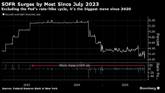 美国的担保隔夜融资利率创2023年以来最大单日涨幅